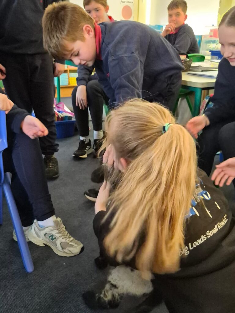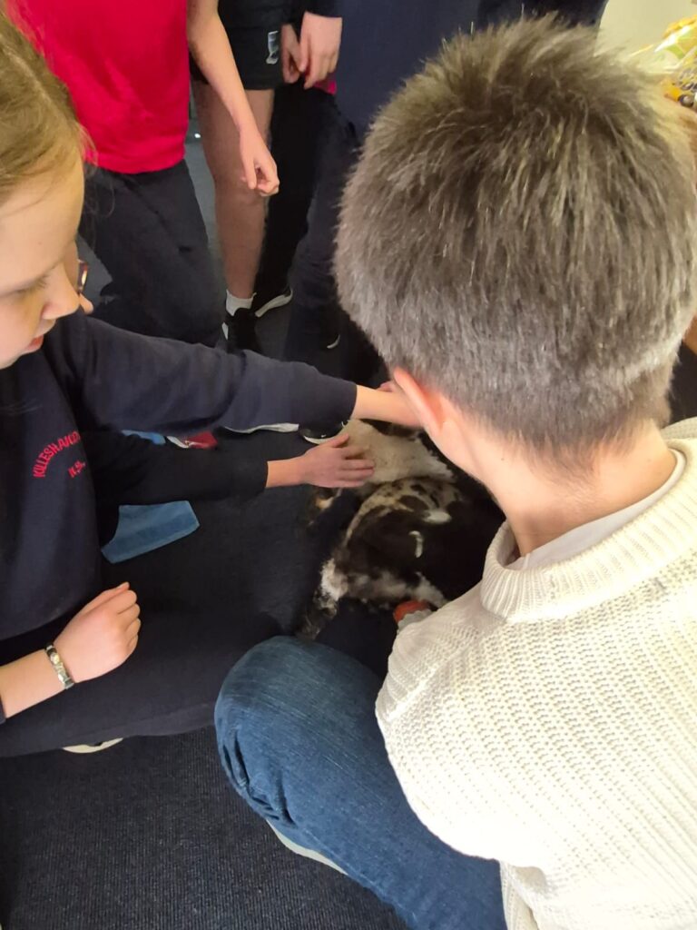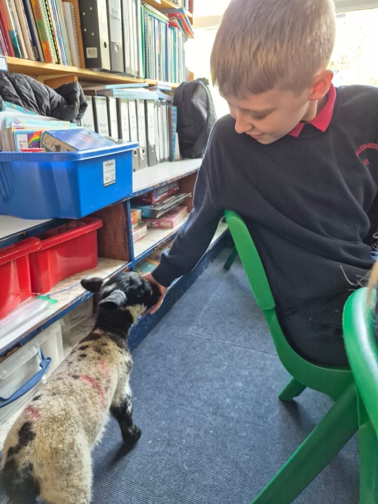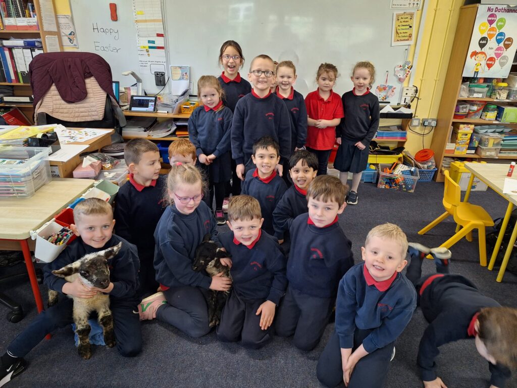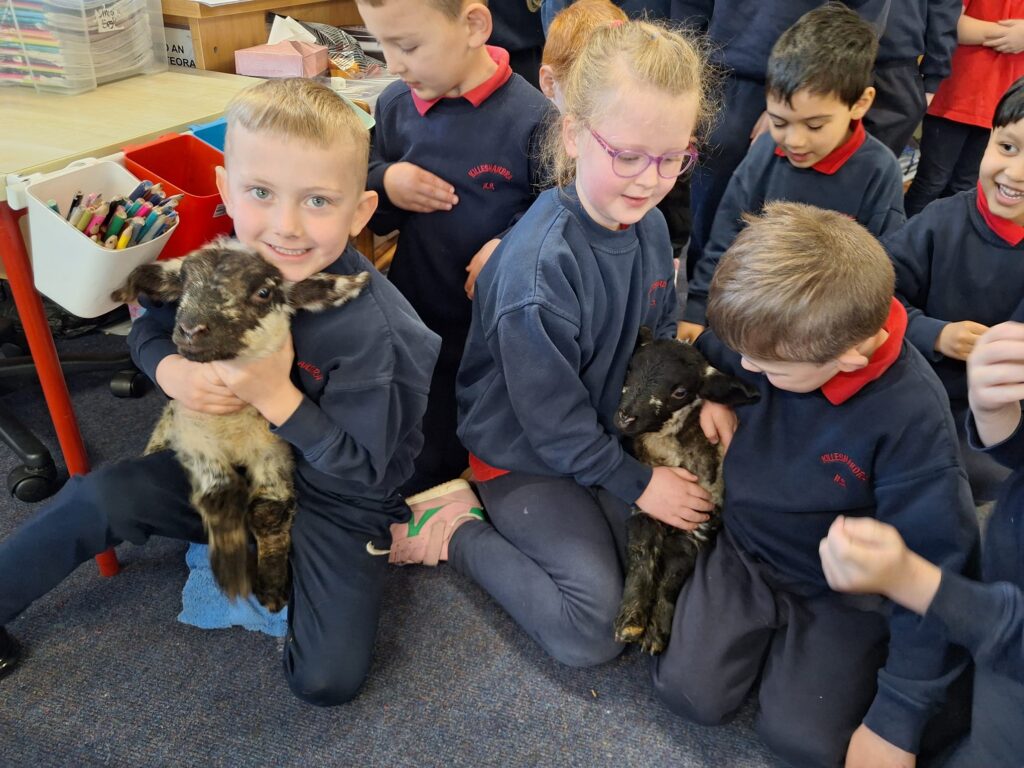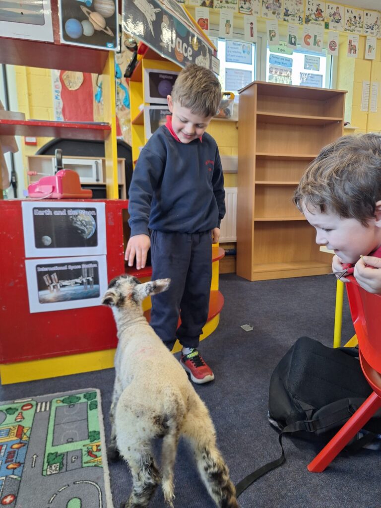We had a couple of special visitors in school this morning for Show and Tell – 2 pet lambs! We enjoyed getting to know them and learning about how to look after lambs.