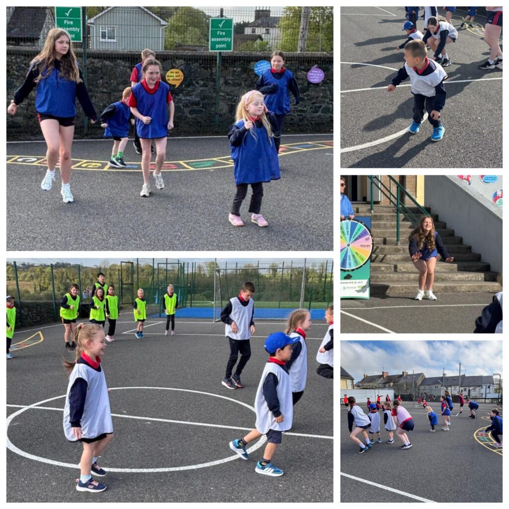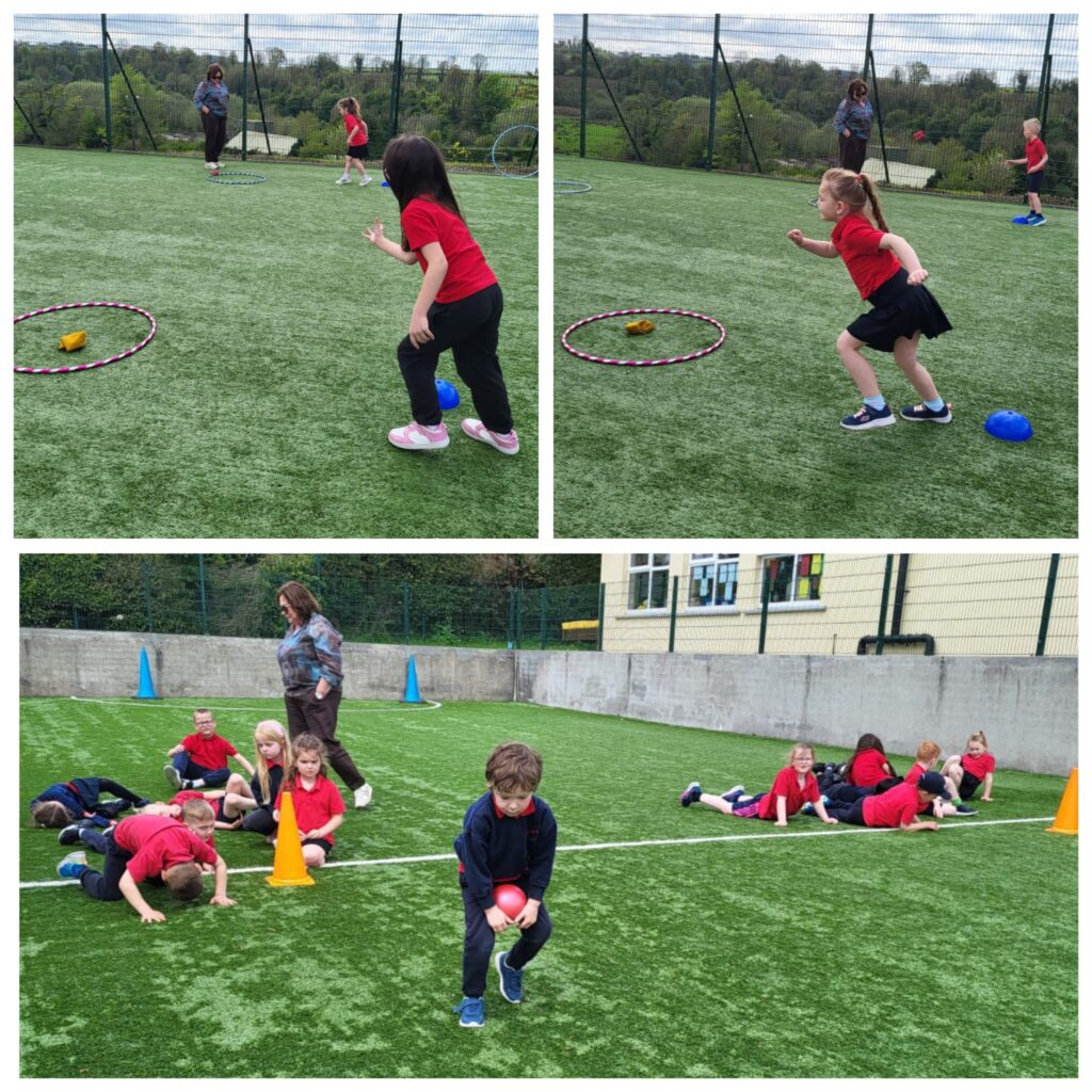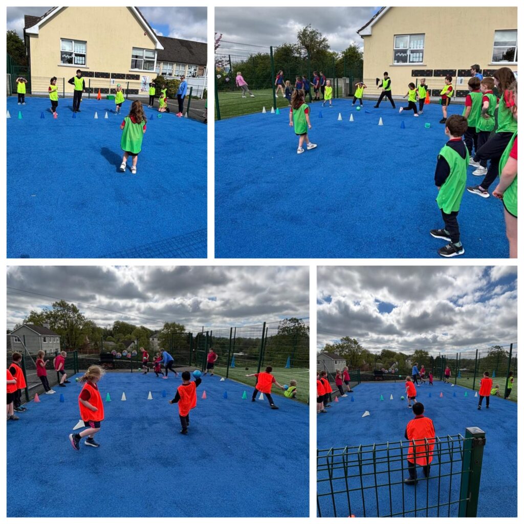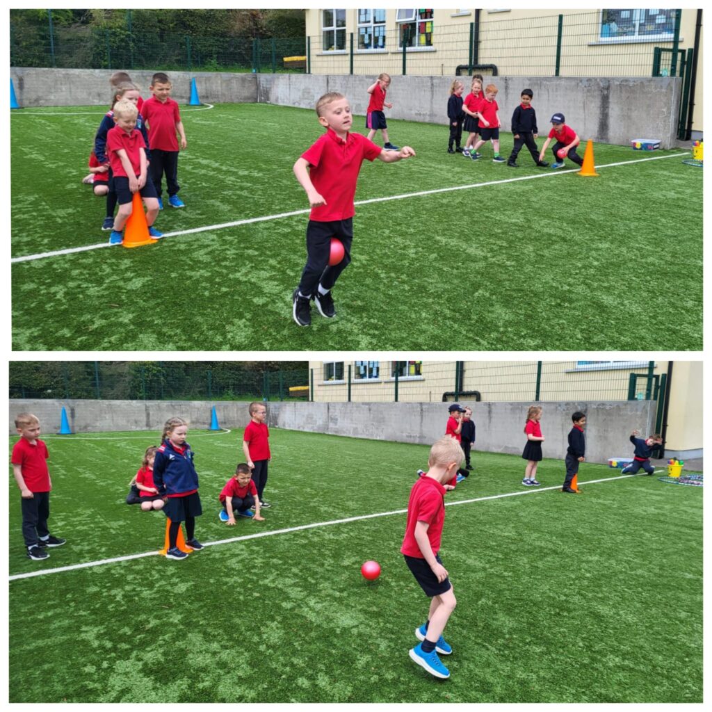 We had a very enjoyable P.E. lesson in the sun on Friday when pupils from the Senior Room paired up with pupils from the Junior Room. They worked together to practise and improve their ball skills – passing, bouncing, striking and kicking. Well done everyone!