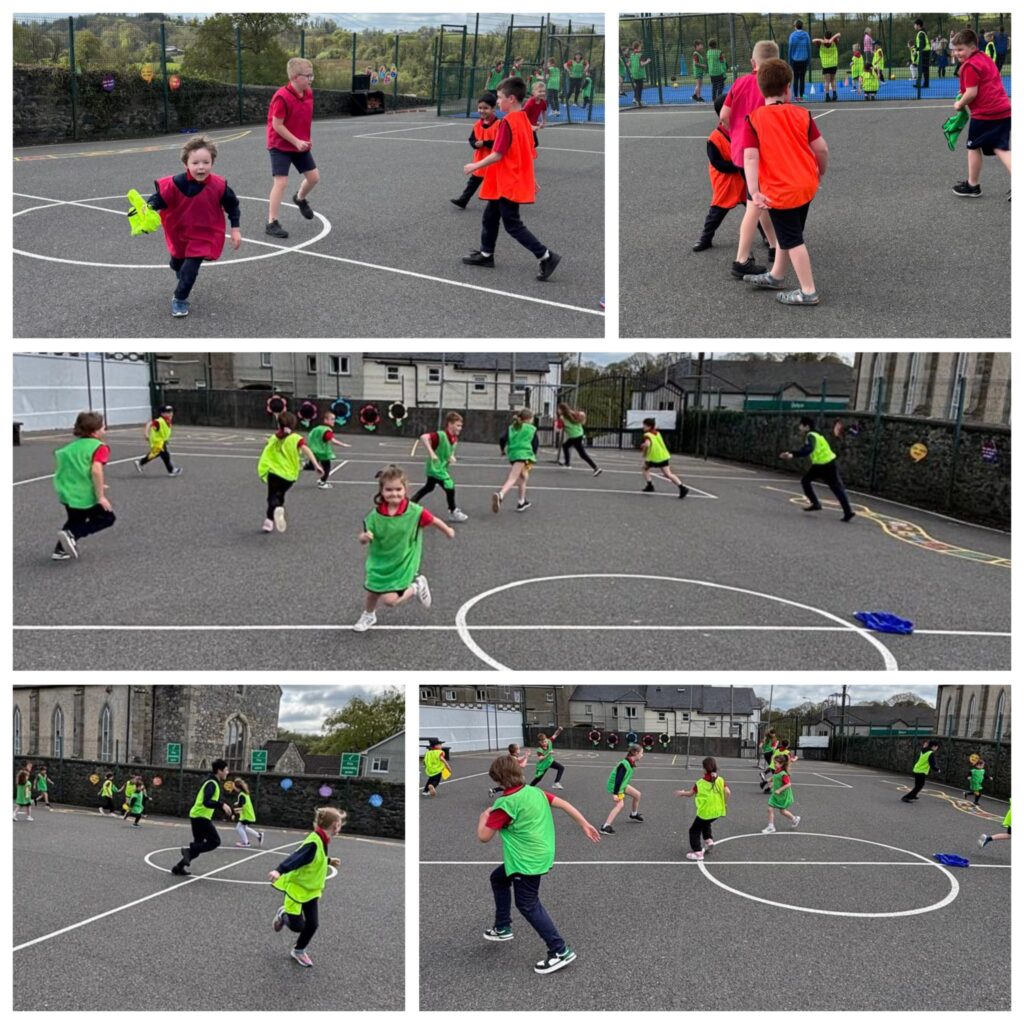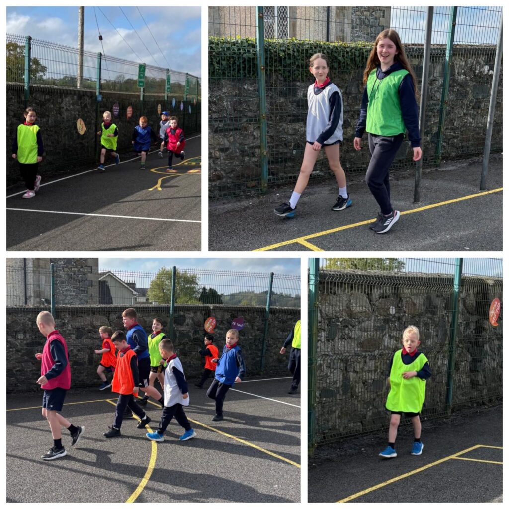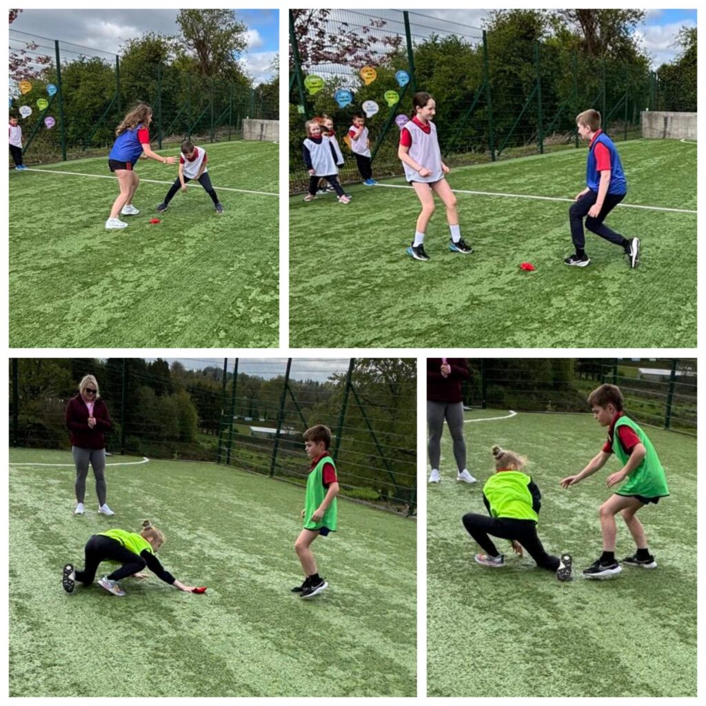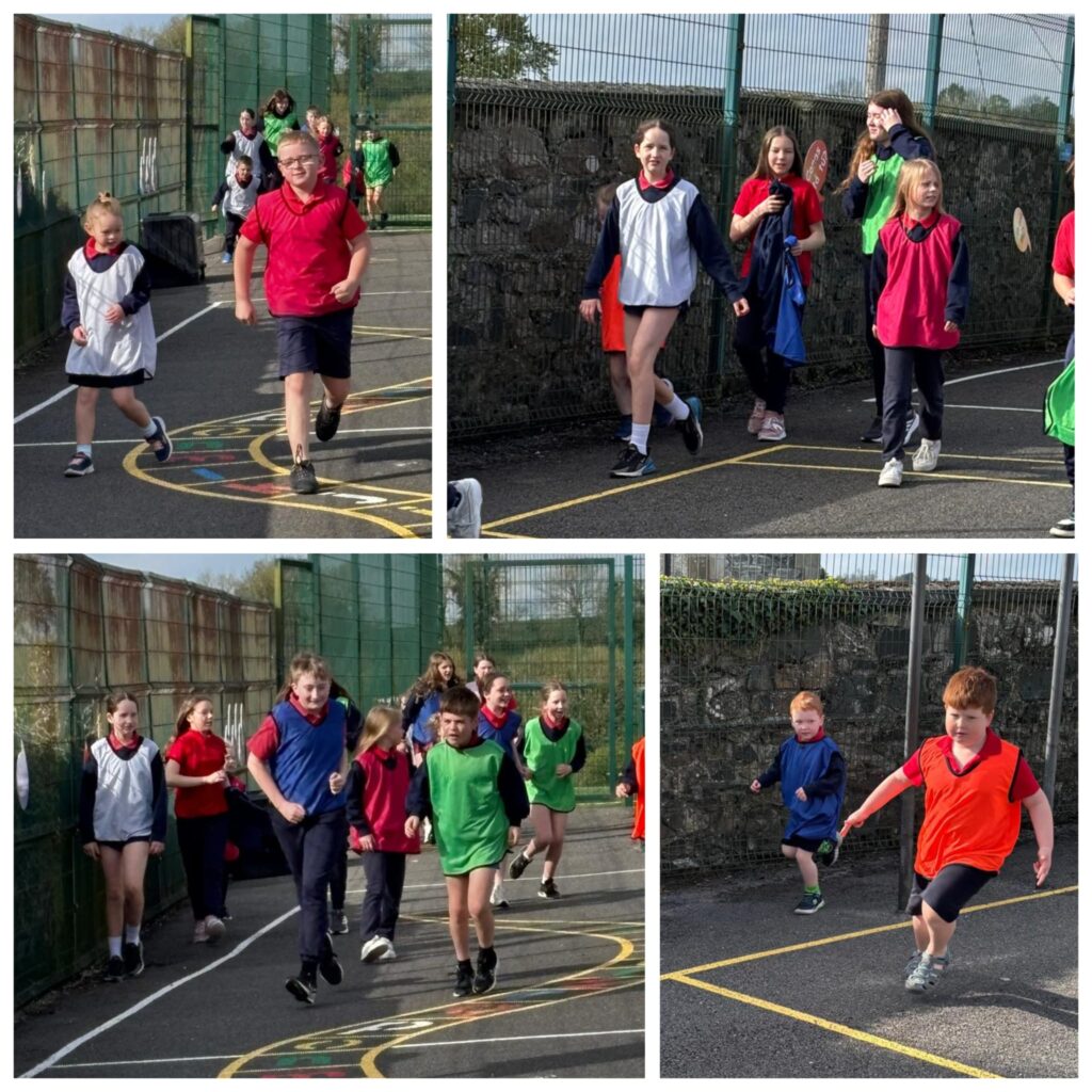 We had a very enjoyable P.E. lesson in the sun on Friday when pupils from the Senior Room paired up with pupils from the Junior Room. They worked together to practise and improve their ball skills – passing, bouncing, striking and kicking. Well done everyone!