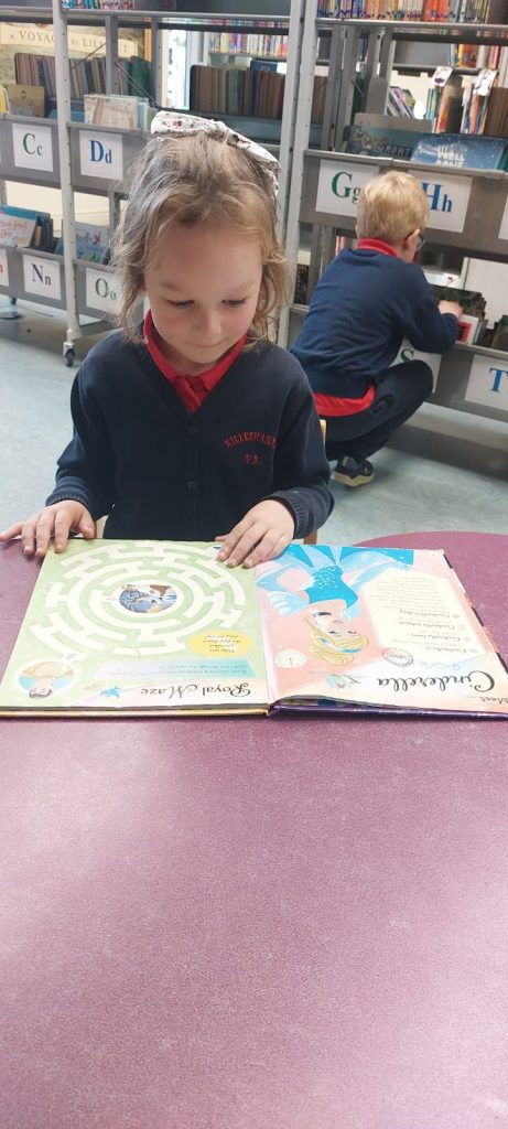 The Junior Room went to the Johnston Central Library in Cavan today for a storytelling session with Pat Ryan. We heard a story about the runaway pancake, Phoebe who lived on a boat and a dark, dark castle with an electrician hiding in the cupboard!